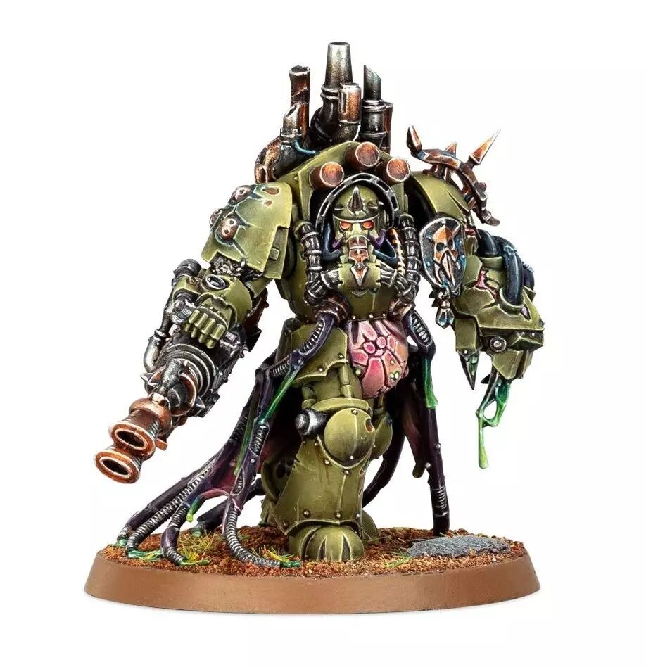 Une profusion de tuyaux émerge de l’armure d’un Seigneur de la Virulence. Il s’en échappe des fumées nocives et des éruptions putrides dont la couleur et la puanteur guident les tirs des machines d’artillerie campées derrière les lignes. De sa cape coule une traînée de mucus que les Machines-démons affamée n’ont qu’à suivre.Faites diriger votre armée de la Death Guard avec ce Seigneur de la Virulence magnifiquement affreux. Son armure Terminator contaminée est frappée des symboles de Grand-père Nurgle et des stigmates de ses bienfaits. Armé d'un gerbe-peste jumelé et d'une griffe de la peste, il est paré à répandre les maladies dans toute la galaxie. Riche de nombreuses textures, le Seigneur de la Virulence offre aussi bien un excellent projet de peinture que le fer de lance de votre prochaine invasion de la Death Guard.