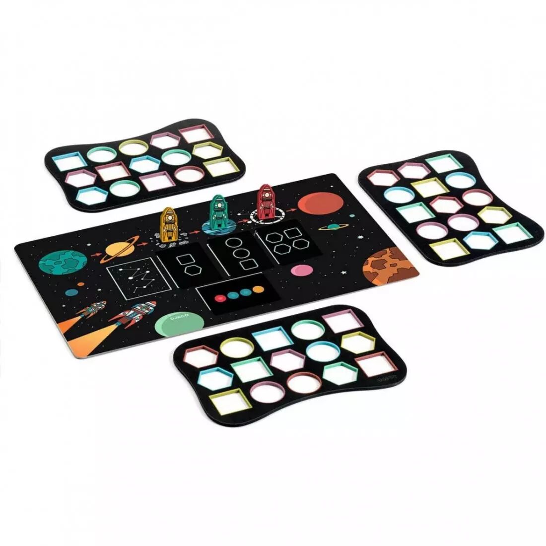 À chaque tour est révélée une carte avec des planètes de formes et de couleurs différentes. Au top, saisissez-vous de votre plateau de commande et placez vos doigts dans les boutons correspondants ! Quand vous êtes prêts, annoncez STOP ! Tout le monde s'arrête et observe vos plateaux. Si vos doigts activent toutes les catégories demandées, et pas plus, votre fusée progresse vers la planète suivante ! Sinon votre fusée recule d'une planète ! Plus vous avancez vers mars, plus vous subirez de contraintes supplémentaires à respecter. Parviendrez-vous à remporter cette course interplanétaire ?