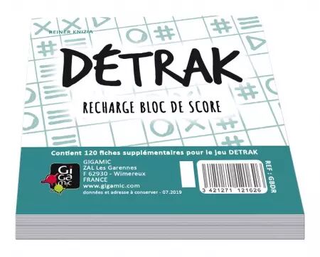 Accueil > Jeux de société > Jeux d'ambiance > Les jeux de dés > Detrak - Recharge Bloc De Score (3 Blocs De 50 Fiches)