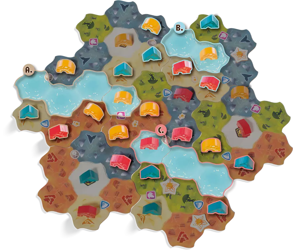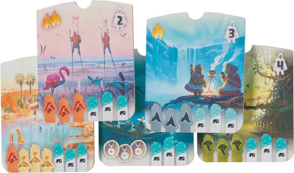 Prenez la tête de votre tribu et partez à la conquête du nouveau monde. Dans Dewan, chaque joueur incarne une tribu nomade qui explore des territoires redevenus sauvages. En posant stratégiquement vos camps sur les zones clés du plateau, vous récoltez des ressources essentielles et tentez de remplir vos objectifs avant vos adversaires.