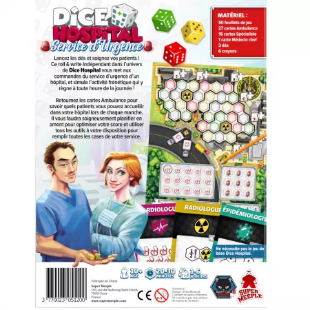 Retournez les cartes Ambulance pour savoir quels patients vous pouvez accueillir dans votre hôpital lors de chaque manque. Il vous faudra soigneusement planifier en amont pour optimiser votre score et utiliser tous les outils à votre disposition pour remplir toutes les cases de votre service.