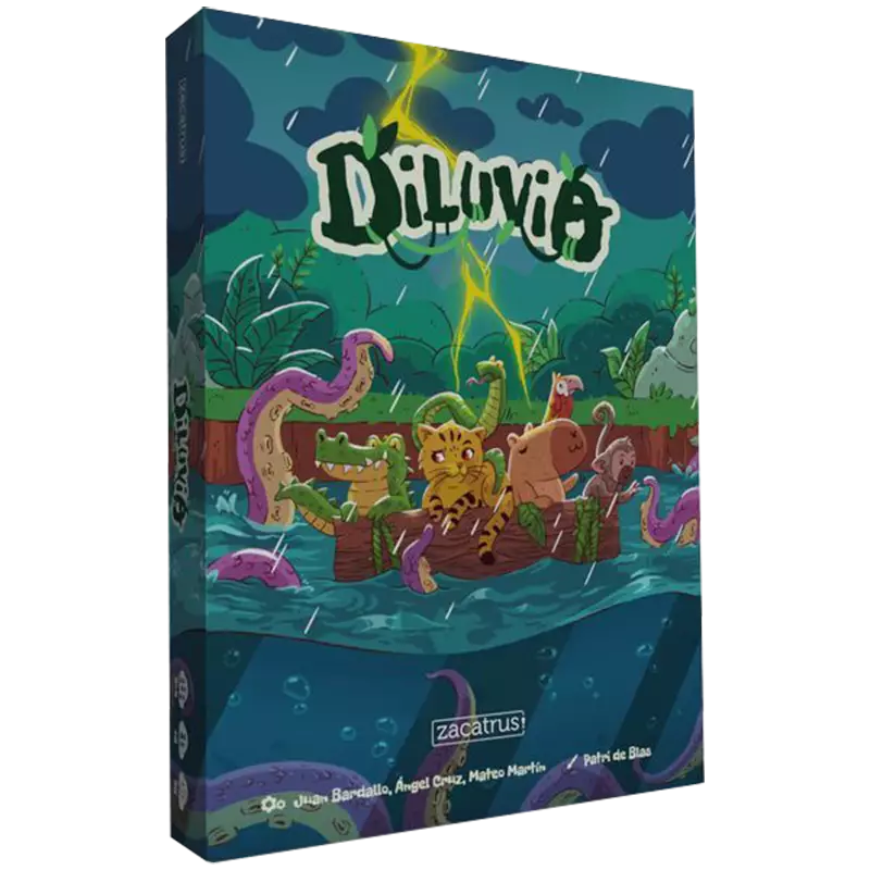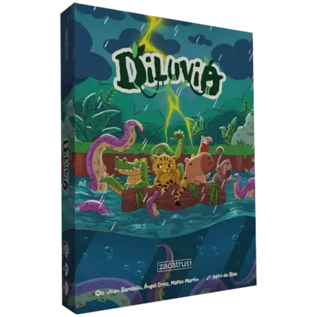Avec des composants tels que le plateau de mer et de jungle, le trône de la jungle, le marqueur de radeau et des cartes qui déclencheront des actions telles que des mouvements, des bousculades et même des tsunamis, Diluvio offre une expérience de jeu unique. Pensez-vous pouvoir protéger votre espèce ?