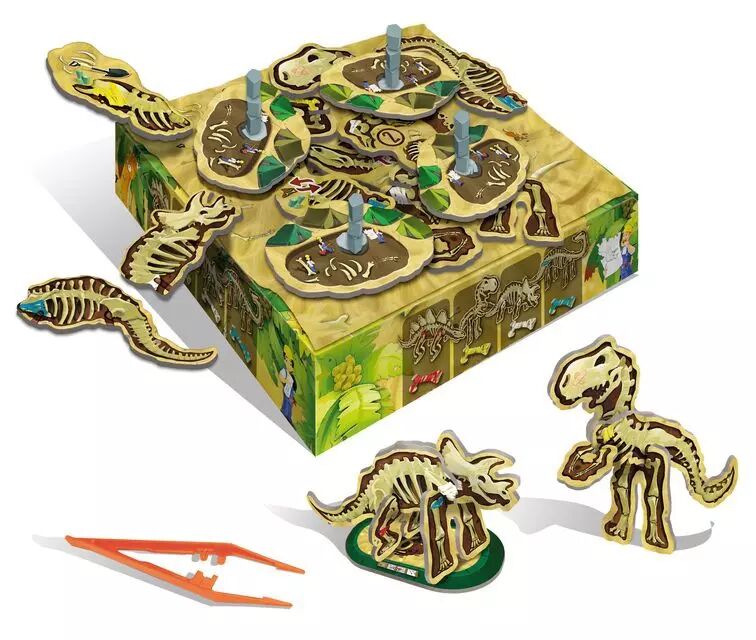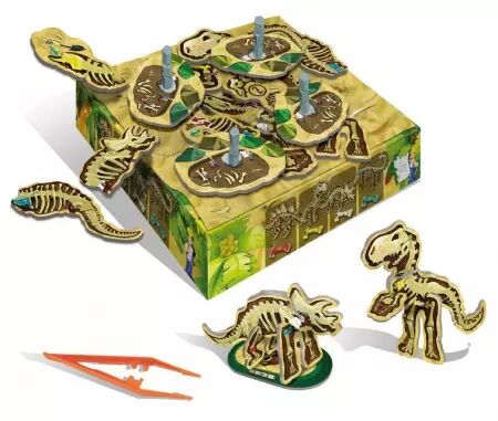 Le joueur tente d'attraper délicatement une tuile fossile de dinosaures. Il collectionne les pattes, têtes, queues et corps des dinos ainsi récupérés. Soit il assemble des tuiles du même dinosaure ce qui forme un dino authentique (il gagne 10 points), soit il assemble des tuiles de dinosaures différents, ce qui forme un dino rigolo (il gagne 6 points). Dès que 5 dinos sont assemblés le joueur ayant le plus de points remporte la partie.
