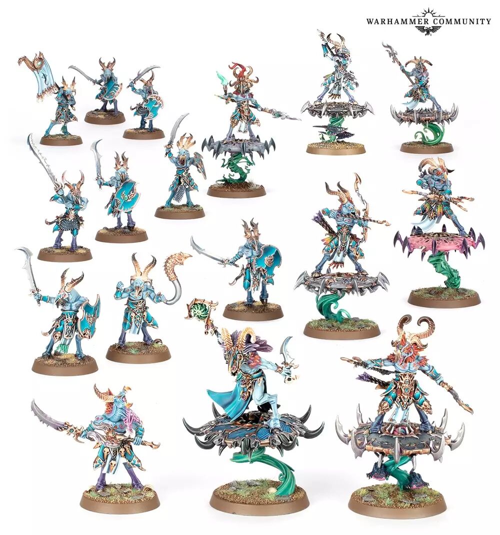 Ces unités constituent également un excellent moyen d'agrandir une armée des Disciples de Tzeentch, avec des options d'unités supplémentaires si vous ne comptez pas les employer dans les parties de Fer de Lance. Les Tzaangors Éclairés et Flambeciel sont complètement interchangeables et peuvent être assemblés en une seule et même unité si vous le désirez, tandis que les Tzaangors peuvent être armés soit d'une épée et d'un bouclier, soit d'une paire de lames, et jusqu'à quatre d'entre eux ont la possibilité de porter une arme à deux mains à la place