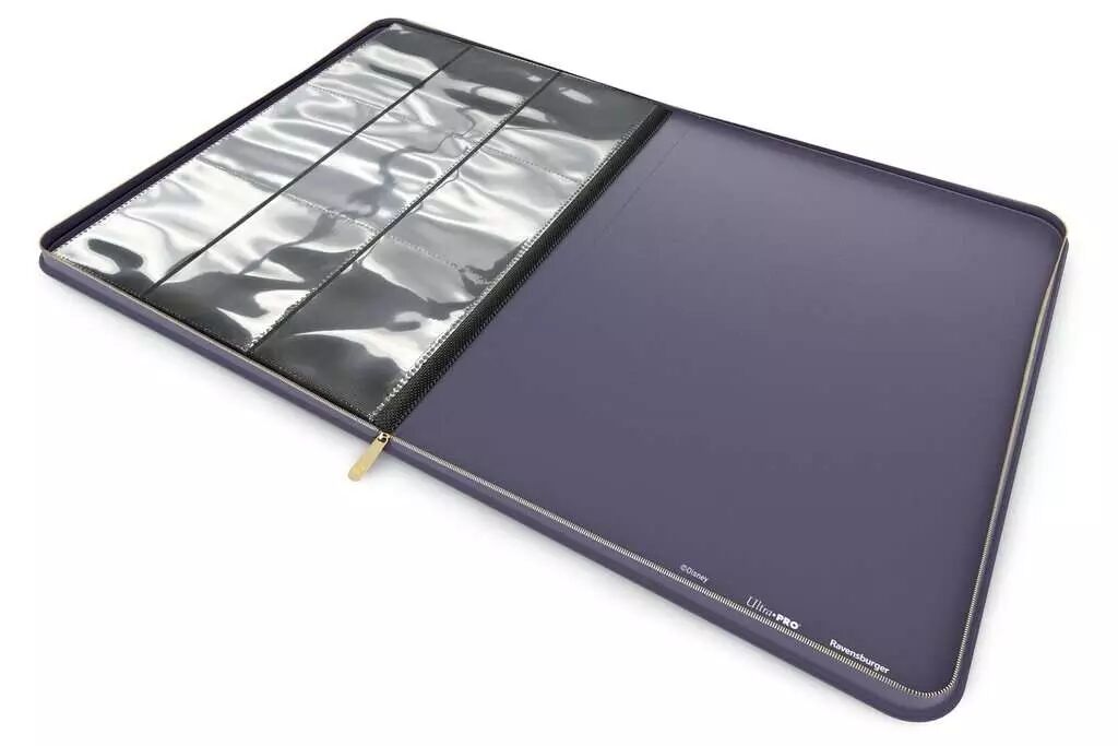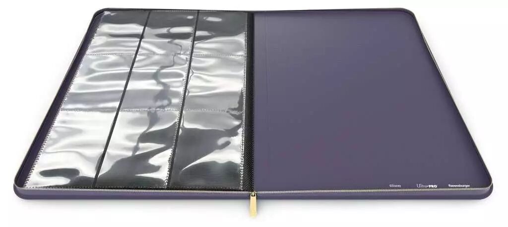Offrez à votre collection Disney Lorcana le meilleur système pour ranger et organiser vos cartes avec ce portfolio A4 Deluxe à fermeture éclair.Ce portfolio aux couleurs inspirées du thème de Disney Lorcana peut contenir jusqu'à 252 cartes de taille standard.Ses dorures éblouiront les autres collectionneurs lorsque vous leur montrerez votre collection. Vous montrerez avec style au monde entier votre amour pour vos cartes Disney Lorcana.Sa fermeture éclair permet un verrouillage sécurisé lorsque vous le transportez.Le Portfolio Premium peut contenir jusqu’à 252 cartes de format standard, offrant ainsi un élégant moyen de ranger et d’organiser votre collection. Fabriqué à partir de matériaux de première qualité et embelli par une finition en simili-cuir, cet élégant Portfolio à fermeture éclair permet une protection optimale de vos cartes.Rangez vos cartes pour les consulter rapidement et les échanger facilement grâce à ce portfolio.