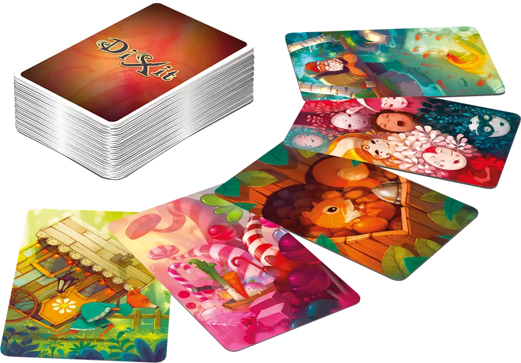 Dixit est un jeu de société poétique qui vous invite à interpréter des images au gré de votre imagination. Ce jeu familial original a reçu de nombreuses récompenses. Un joueur conteur sélectionne une carte de sa main et énonce un thème en rapport avec l’illustration. Les autres joueurs choisissent une carte de leur main qui leur évoque ce thème. On mélange puis on révèle toutes les images : les joueurs doivent retrouver la carte du conteur pour marquer des points. Vous découvrirez votre entourage sous un nouvel oeil et partagerez une expérience sociale à part entière, tout en vous amusant.