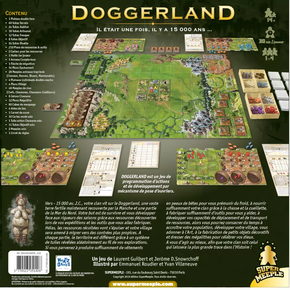 Vers -15 000 av. J.C., votre clan vit sur le Doggerland, une vaste terre fertile maintenant recouverte par la Manche et une partie de la mer du Nord. Votre but est de survivre et vous développer face aux rigueurs des saisons grâce aux ressources découvertes lors de vos expériences et les outils que vous allez fabriquer. Hélas, les ressources récoltées vont s’épuiser et votre village sera amené à migrer vers des contrées plus propices. A chaque partie, le territoire est différent grâce à un système de tuiles révélées aléatoirement au fil de vos explorations. Si vous parvenez à produire suffisament de vêtements en peaux de bêtes pour vous prémunir du froid, à nourrir suffisamment votre clan grâce à la chasse et à la cueillette, à fabriquer suffisamment d’outils pour vous y aider, à développer vos capacités de déplacement et de transport de ressources, alors vous pourrez consacrer du temps à accroître votre population, développer votre village, vous adonner à l’Art, à la fabrication de petits objets décoratifs et dresser des mégalithes pour célébrer vos dieux. A vous d’agir au mieux, afin que votre clan soit celui qui laissera la plus grande trace dans l’Histoire !