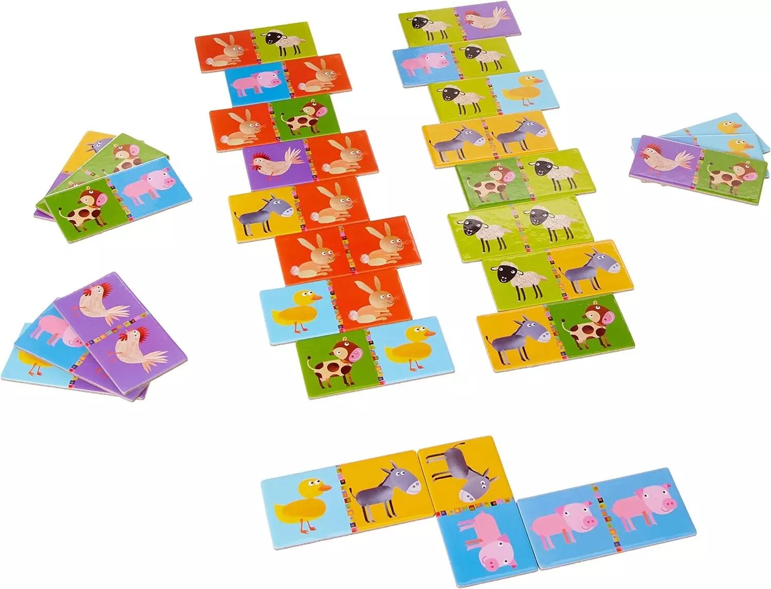 Réf. : DJ08158 Découvrez le jeu Domino Ferme de Djeco, un jeu de reconnaissance des images et d'approche des nombres sur le thème des animaux de la ferme pour les enfants dès 3 ans.