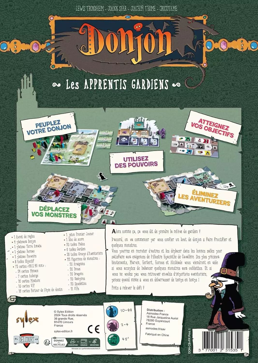 Dans Donjon : Les Apprentis Gardiens, vous ne jouez pas les héros, mais leurs pires cauchemars ! Chaque joueur doit recruter des monstres et organiser son repaire pour ralentir l’invasion des aventuriers. Chaque choix est crucial : renforcerez-vous vos défenses ou sacrifierez-vous des créatures pour déclencher des pouvoirs redoutables ? À vous d’anticiper et de faire preuve de malice pour être le meilleur gardien.