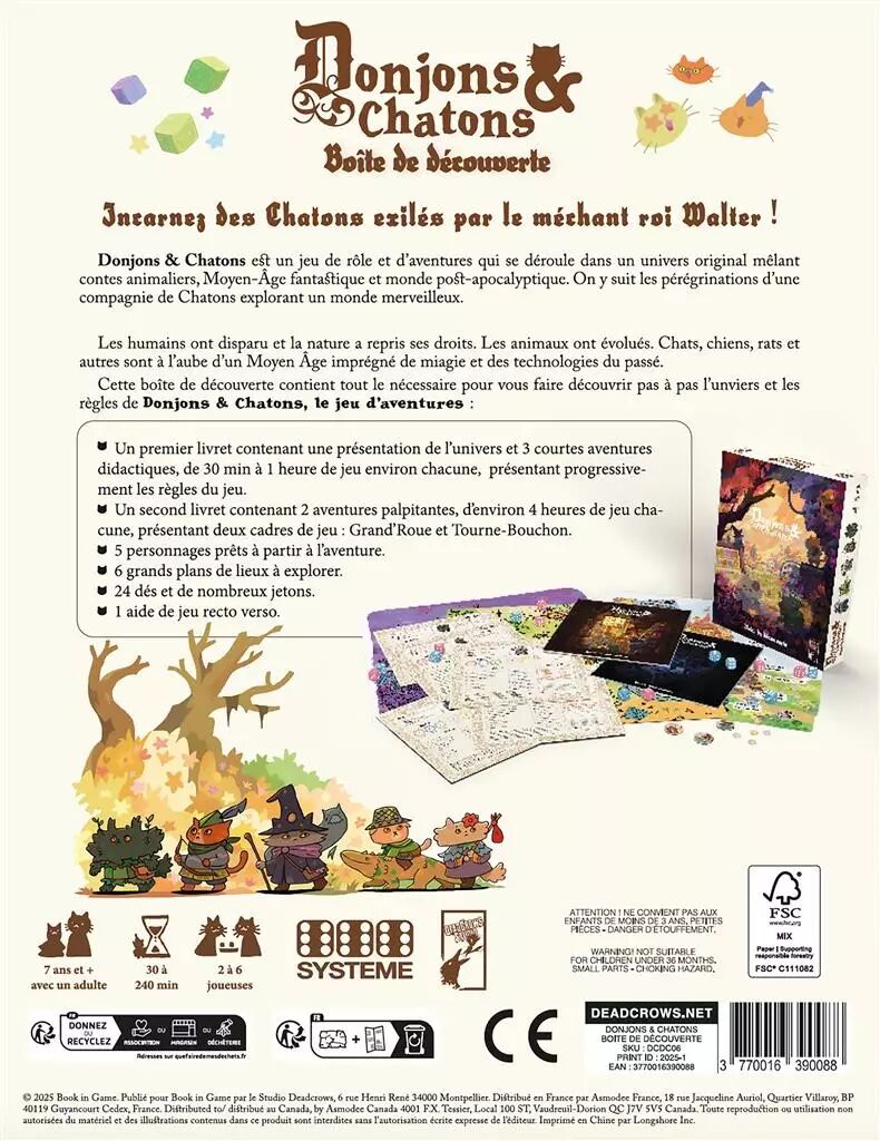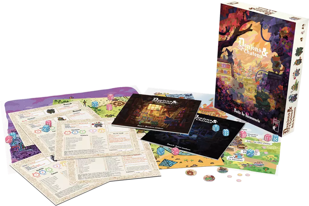 La Boite Découverte vous permettra d’incarner des héros chatons partant à l’aventure. Elle vous guidera pas à pas dans les règles de jeu et l’univers.