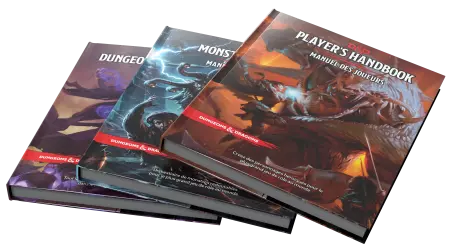 Le Manuel des Monstres : Aide le maître du donjon (le narrateur du jeu) à peupler les parties de créatures fantastiques emblématiques. Inclut les détails et les règles pour plus de 400 monstres allant des gobelins aux dragons, avec plus de 150 illustrations.
