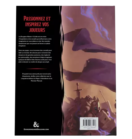Réf. : WIDD5GUMAFR Le Guide du Maître est une mine d'inspiration et de conseils qui enflammera votre imagination et vous aidera à créer des mondes d'aventures que vos joueurs se feront un plaisir d'explorer.