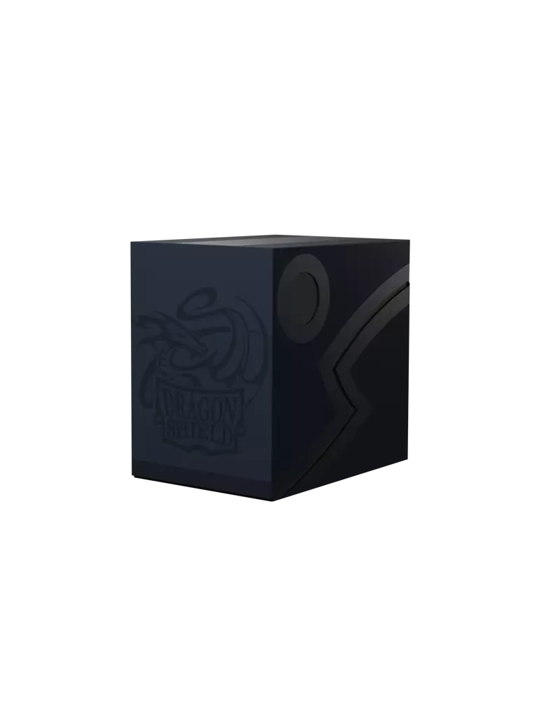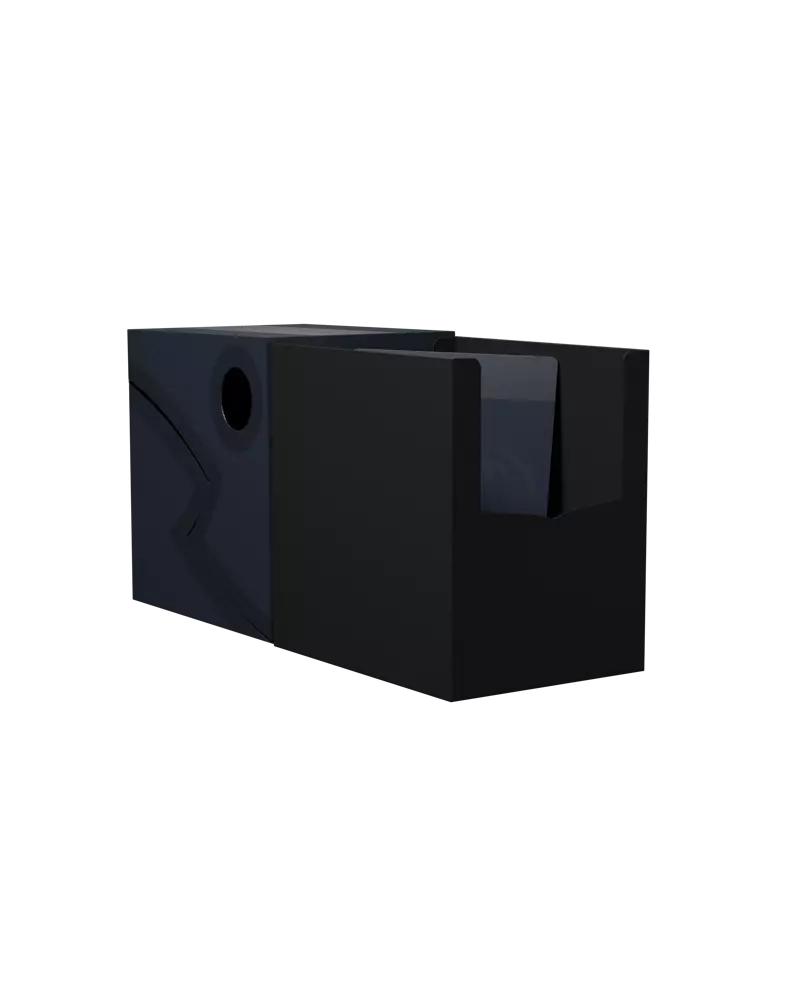 Le couvercle s'insère autour de la boîte pour une fermeture sécurisée, ou peut être réglé pour rester ouvert pour un accès facile aux cartes. Chaque Double Shell est livré avec un séparateur et dispose d'un champ d'écriture sur le dessus pour la personnalisation. Le Double Shell peut contenir 100 cartes à double pochette avec de la place pour les jetons ou jusqu'à 150 cartes à pochette.
