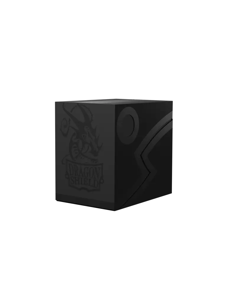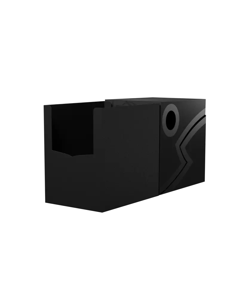 Le couvercle s'insère autour de la boîte pour une fermeture sécurisée, ou peut être réglé pour rester ouvert pour un accès facile aux cartes. Chaque Double Shell est livré avec un séparateur et dispose d'un champ d'écriture sur le dessus pour la personnalisation. Le Double Shell peut contenir 100 cartes à double pochette avec de la place pour les jetons ou jusqu'à 150 cartes à pochette.