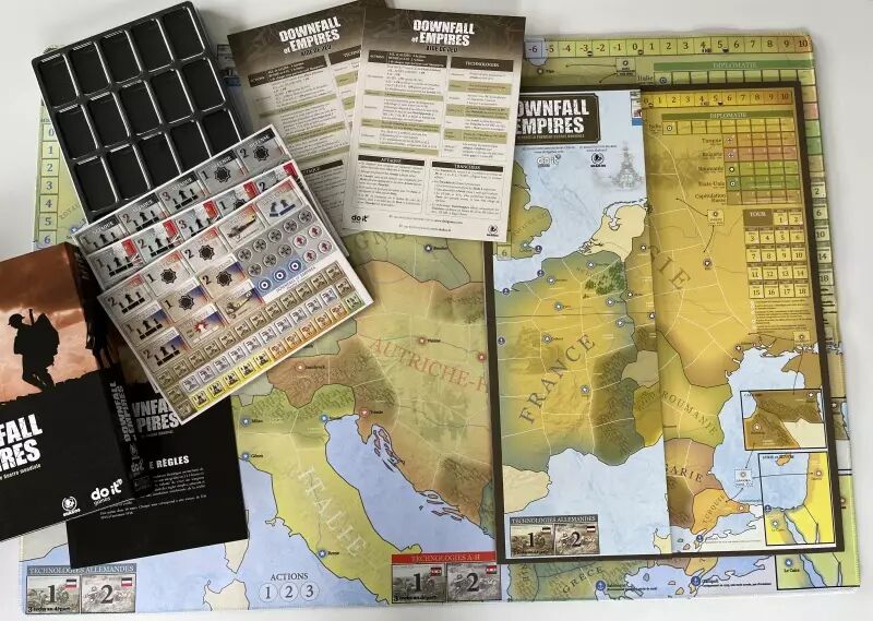 Downfall of Empires vous place directement au cœur du conflit de la Grande Guerre. Chaque joueur incarne l’une des grandes puissances et doit allier habilement renforts militaires, gestion du ravitaillement et diplomatie pour renverser l’équilibre mondial. Le jeu se distingue par ses mécanismes limpides qui privilégient la réflexion stratégique et la prise de risques mesurée, sans jamais tomber dans la complexité gratuite.