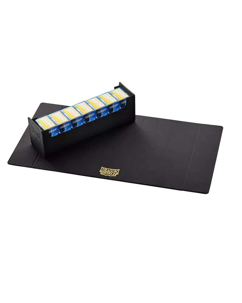 Le Dragon Shield Magic Carpet est une boîte de rangement combinée à un tapis de jeu qui offre un moyen facile et élégant de stocker et de transporter de nombreuses cartes. Il est doté d'un extérieur exclusif en "peau de dragon" et d'un intérieur lisse satin, ainsi que d'une fermeture magnétique pour protéger les cartes.