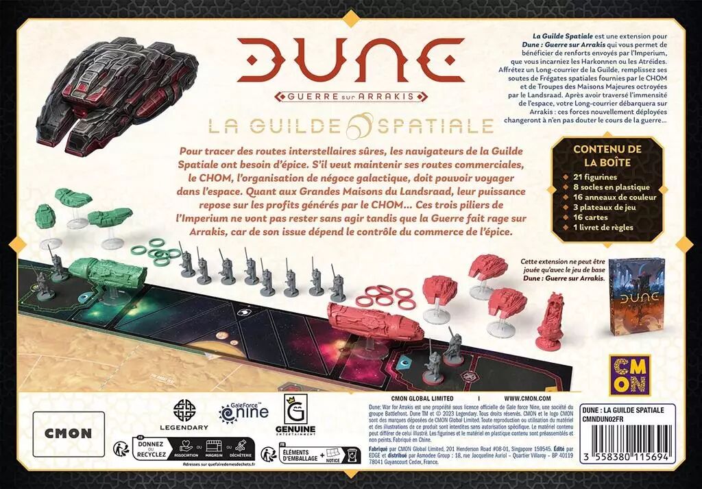 Dune : La Guilde Spatiale transforme vos sessions de jeu en introduisant un plateau spatial où les Heighliners se précipitent pour livrer des renforts. Cette dimension supplémentaire permet une stratégie encore plus complexe, rendant chaque partie unique. Chaque joueur doit non seulement gérer ses ressources sur Arrakis, mais aussi optimiser ses mouvements dans l'espace.