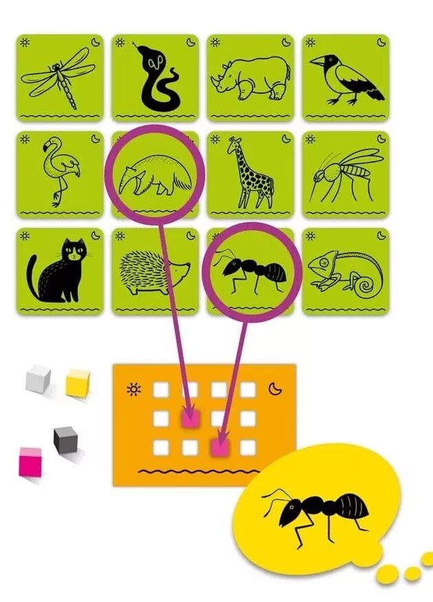 1. Mélangez les cartes et étalez en 12 de la catégorie choisie (objets ou animaux).