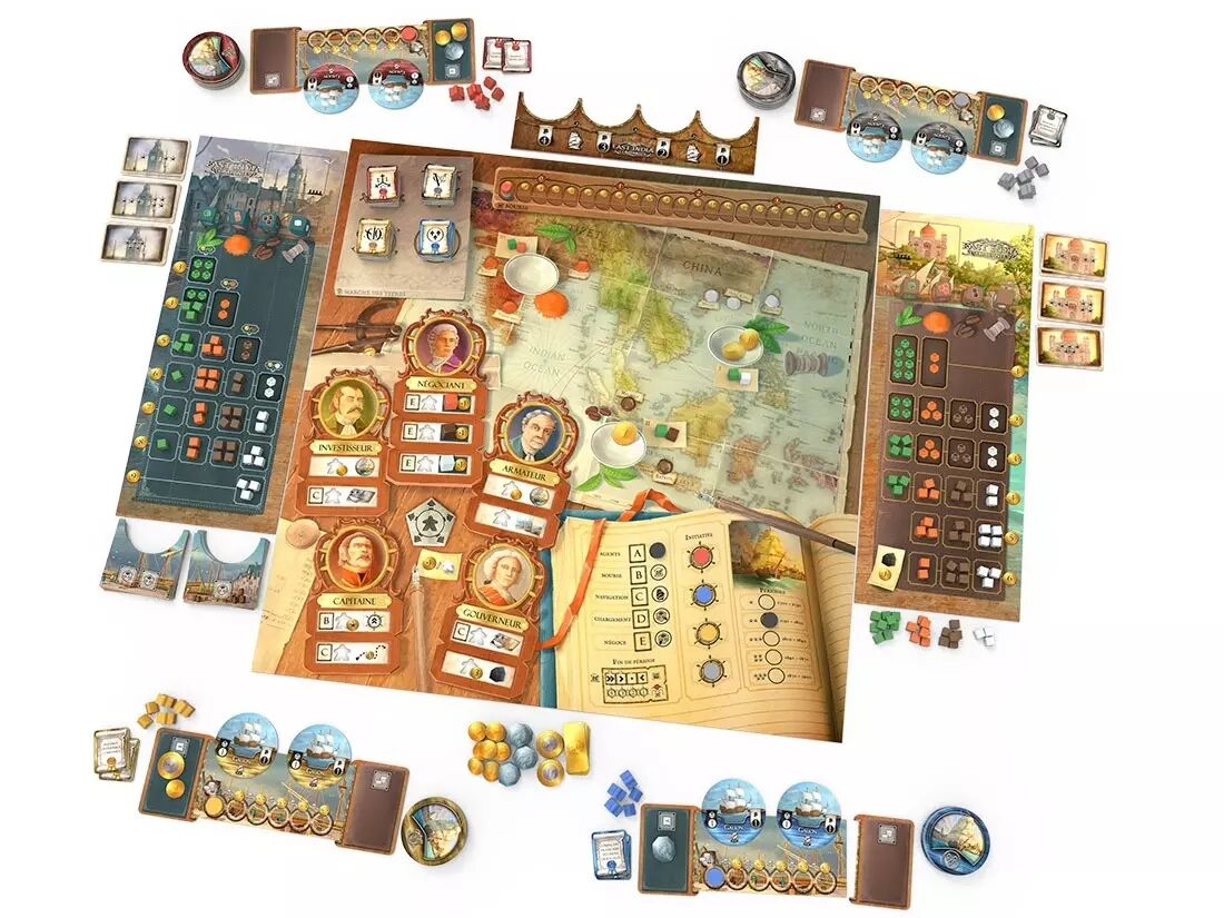 Le jeu se déroule en 5 manches, chacune divisée en 6 phases distinctes. Au cours de ces phases, vous devrez prendre des décisions stratégiques pour optimiser vos actions et devancer vos adversaires. Placez vos ouvriers judicieusement pour acheter des navires, charger des marchandises, explorer de nouvelles routes commerciales et investir dans des actions de compagnie.