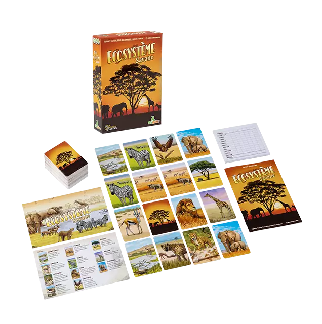 Composez votre grille de 20 cartes en respectant les liens qui unissent les animaux de la savane !