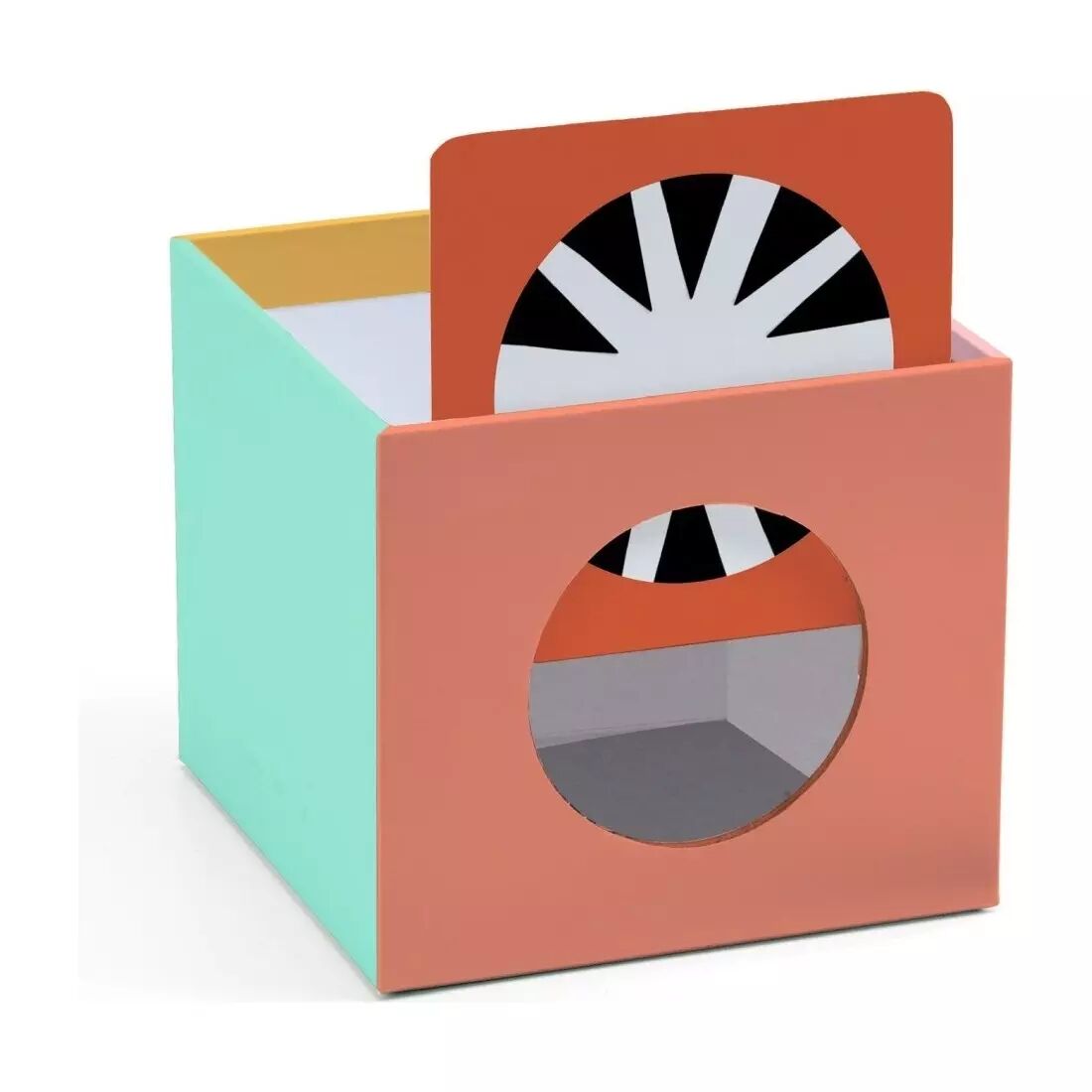 Des pièces en carton épais, faciles à attraper et une astucieuse boîte-tirelire à jouer