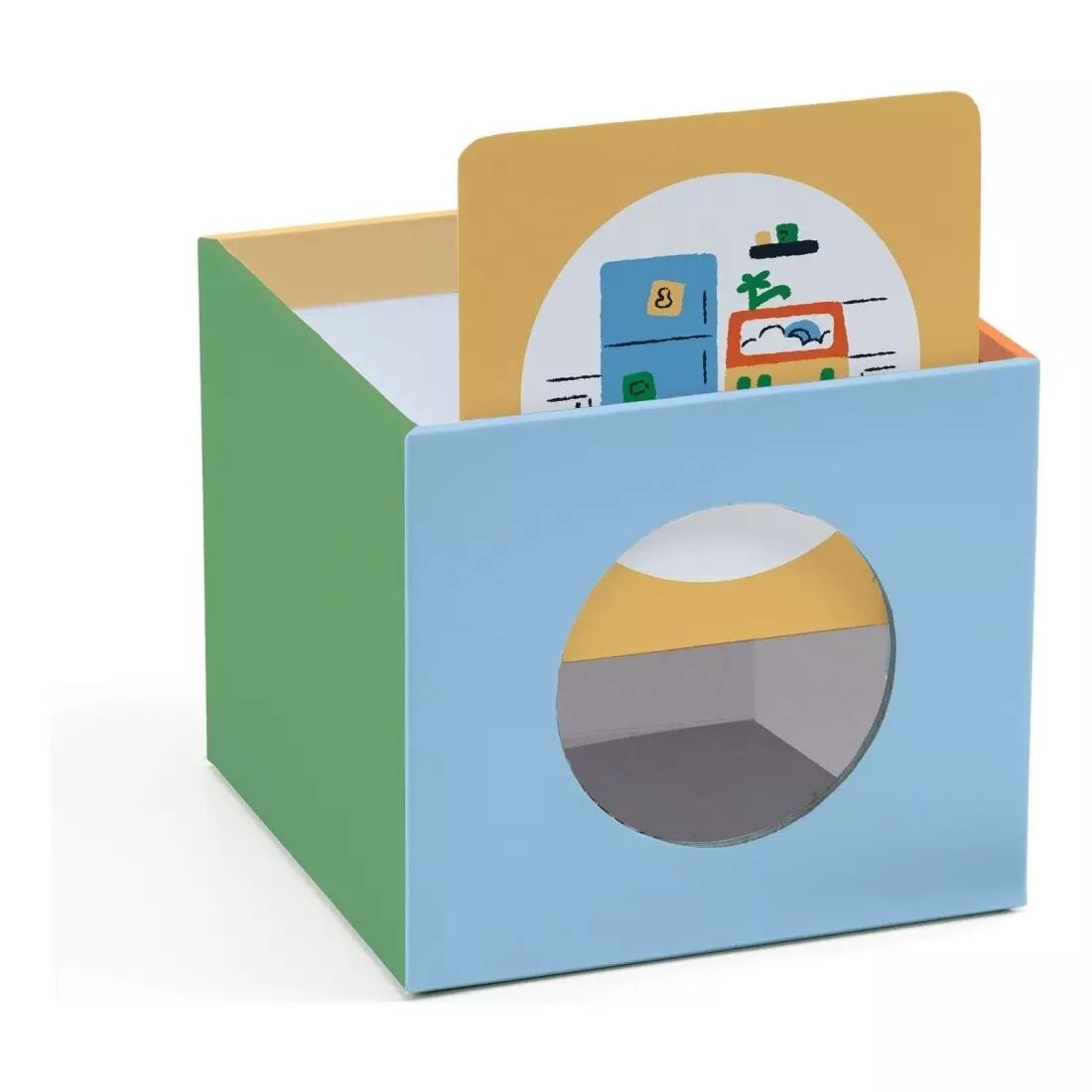 Un jeu d'observation et de tri composé de pièces en carton épais faciles à attraper et à insérer dans une astucieuse boite-tirelire. En jouant, l'enfant apprend à regrouper les objets selon un critère de lieu.