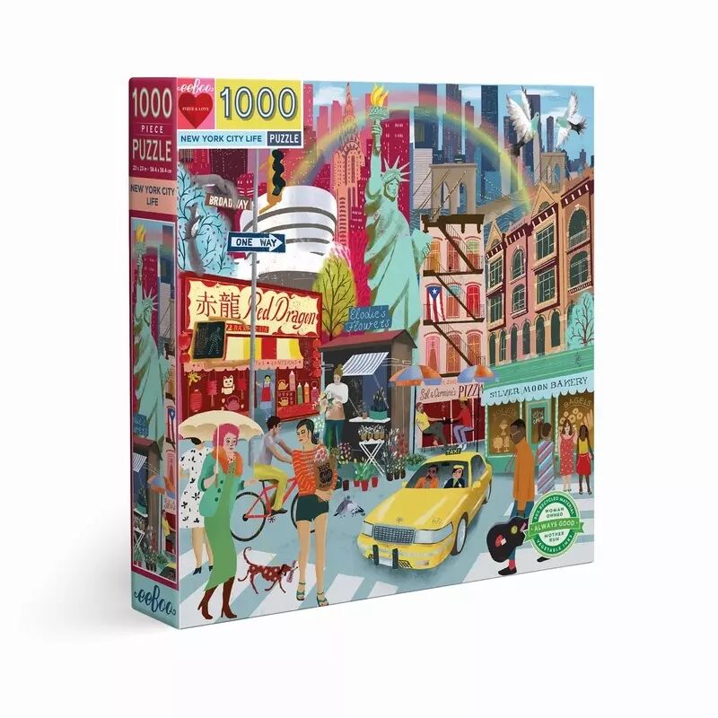 Profitez dun peu de lagitation de la Grosse Pomme. Les monuments célèbres sont facilement reconnaissables - Musée Guggenheim, Statue de la Liberté, boulangeries, restaurants, ponts, skylines et même des pigeons! Illustré par Uta Krogmann.