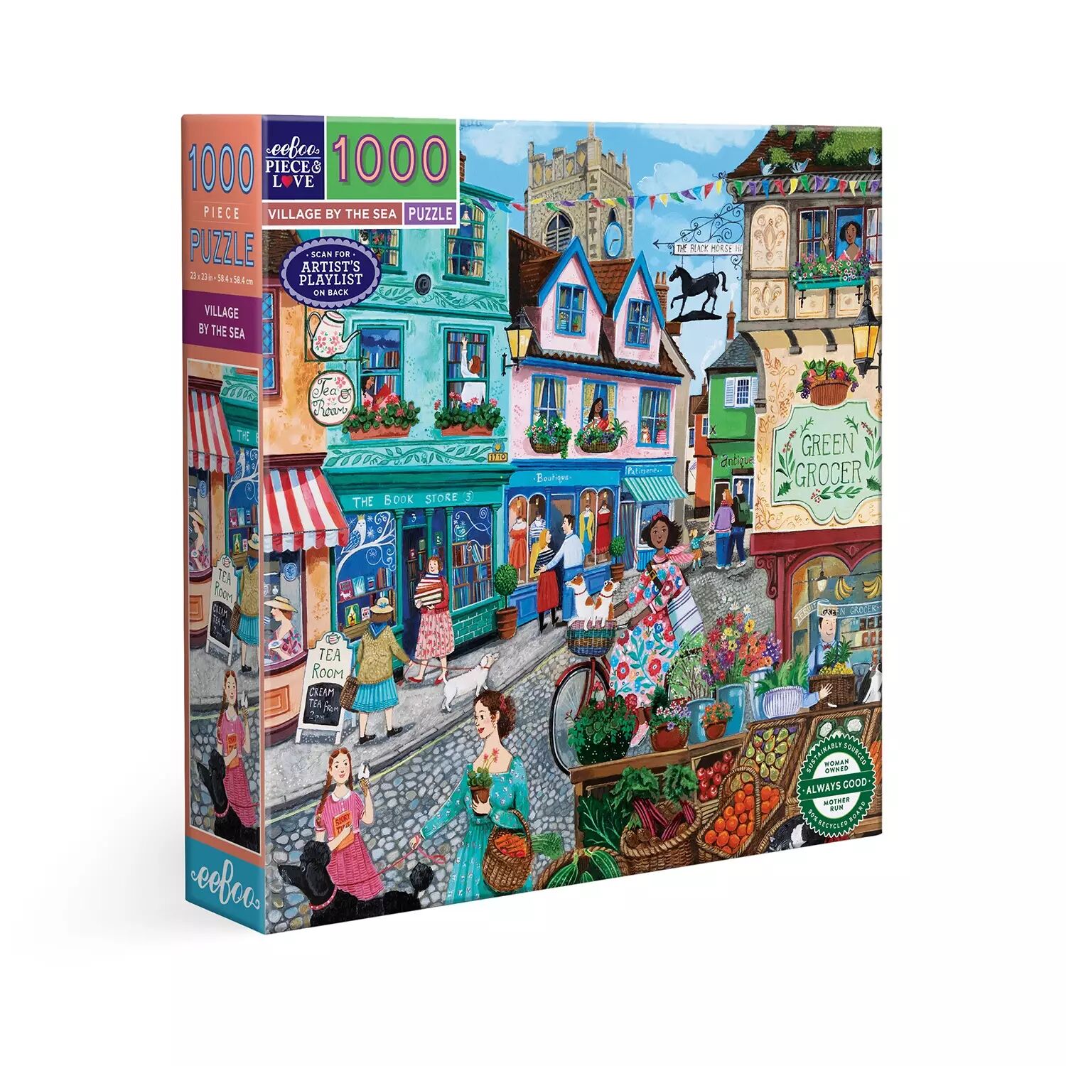 Le Format Carré Convivial : Avec ses 58,5 cm de côté, ce format eeBoo permet de s'installer facilement à plusieurs. C'est le puzzle idéal pour les moments de partage, où chacun peut participer sans avoir à se pencher au-dessus des autres.