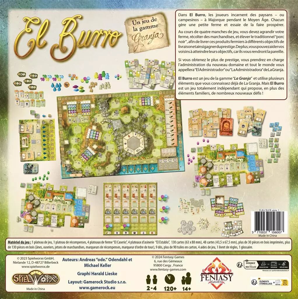 El Burro, c’est le jeu de société expert qui vous plonge au cœur de Majorque, où chaque décision compte. On adore la tension permanente : il faut anticiper, optimiser, mais aussi s’adapter à ce que font les autres. Ici, la frustration n’est jamais punitive : même avec peu de champs, il y a toujours moyen de rebondir grâce à une gestion maline des ressources et des actions