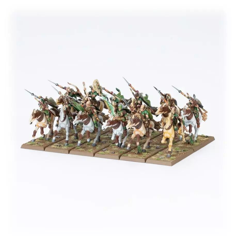 Les Cavaliers Sylvains constituent peut-être la meilleure cavalerie légère de tout le Vieux Monde, car leurs réflexes elfiques leur permettent d'exécuter toute une série de manœuvres en apparence suicidaires et dépassant de loin les capacités des autres races. C'est par une combinaison de grâce talentueuse et d'assurance indéfectible qu'ils rentrent à chaque fois indemnes de leurs affrontements quotidiens.