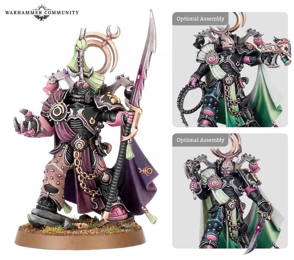 Le Seigneur Exultant et sa suite sont équipés d'armes dorées et d'armures prismatiques. Ce champion ostentatoire est livré avec un choix d'options d'armes comprenant la lance de puissance phénix et le fouet du ravissement, ainsi que quatre packs de puissance différents et deux options de tête.