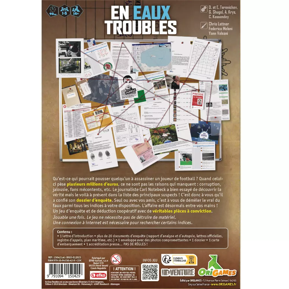 En eaux Troubles est le troisième scénario de la gamme Scènes de Crimes : un jeu d’enquête et de déduction coopératif avec de véritables pièces à conviction.