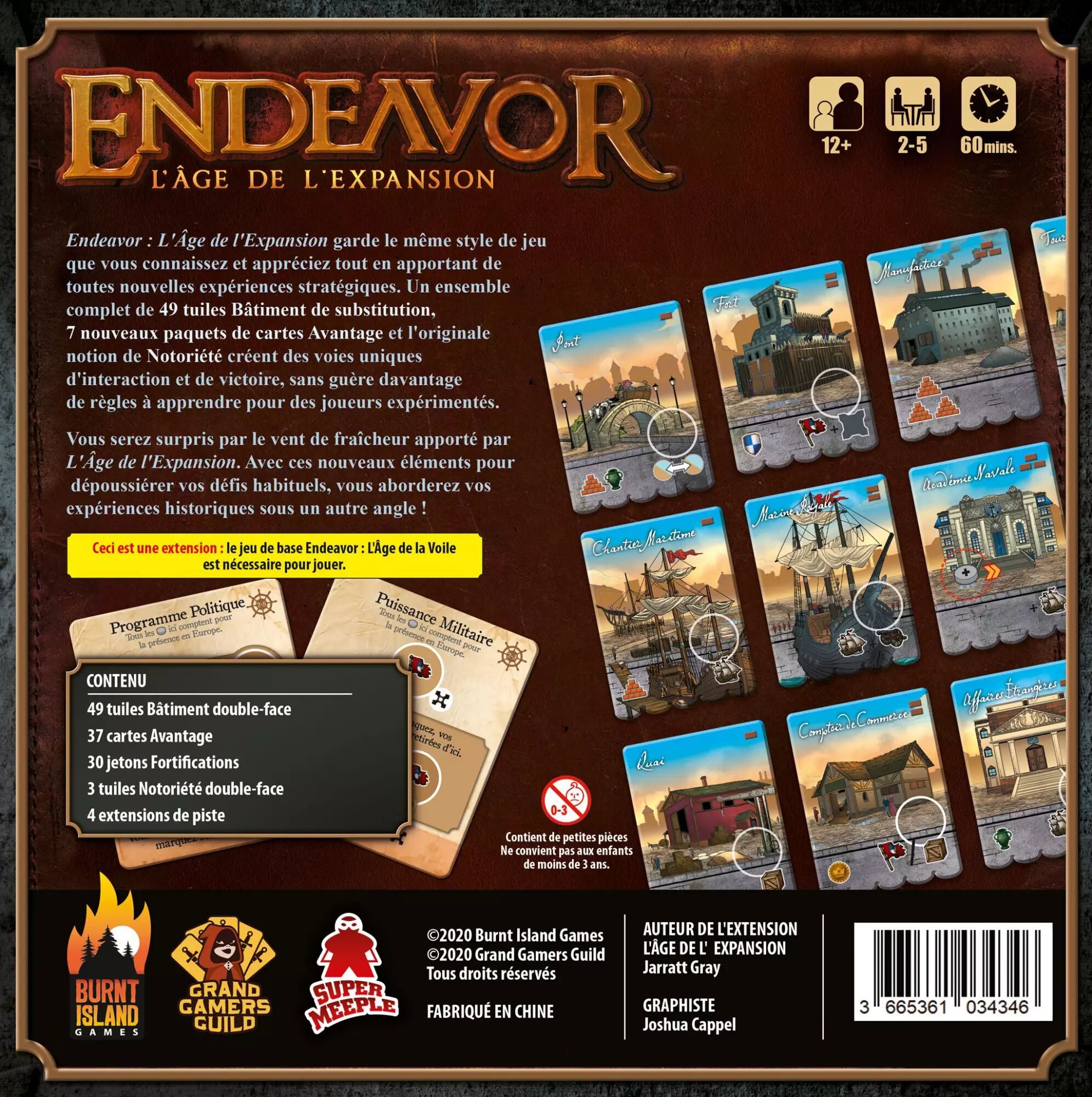 Réf. : JDPSMP035 Un ensemble complet de 49 tuiles Bâtiment de substitution, 7 nouveaux paquets de cartes Avantage et l'originale notion de Notoriété créent des voies uniques d'interaction et de victoire, sans guère davantage de règles à apprendre pour des joueurs expérimentés.