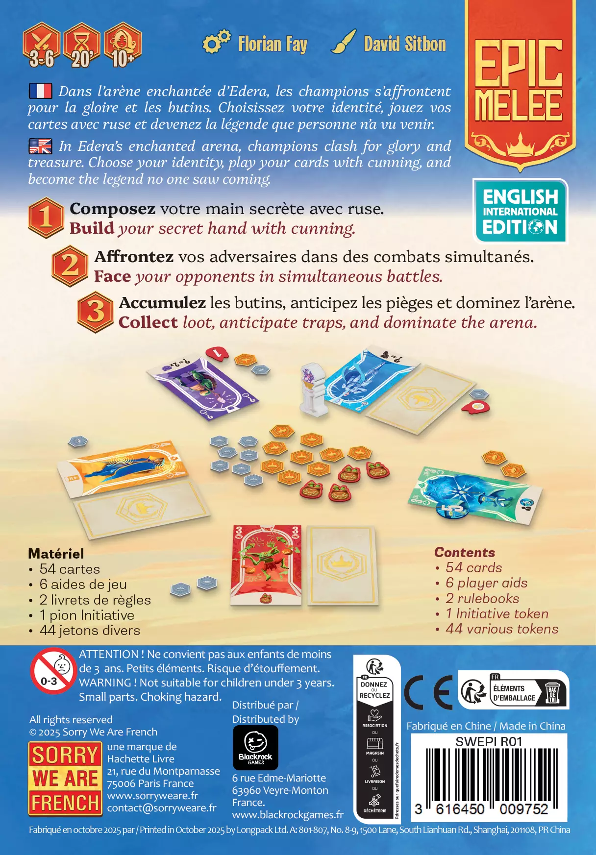 Pour l'emporter, il ne suffit pas de frapper fort ; il faut frapper juste. À la fin de chaque ronde de combat, les joueurs comparent leurs valeurs de combat pour déterminer qui s'empare des jetons Butin Or et Argent. Si le Mage de Lumière est présent, il brise les égalités en votre faveur, vous assurant la première place face à des adversaires de force égale. Avec son format rapide et ses mécaniques malignes, Epic Melee offre une expérience de jeu de cartes intense où chaque carte compte.