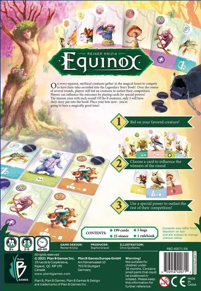Réf. : PBEQUG01FR Equinox est un jeu d'enchères où de fantastiques créatures se mesurent entre elles afin que leur conte fasse partie de la légende. Soyez de la partie et influencez votre favori !
