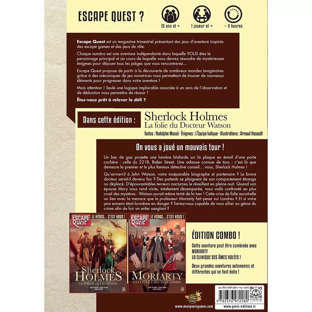 Cette aventure peut être combinée avec Escape Quest – Moriarty, La Clinique des âmes volées.