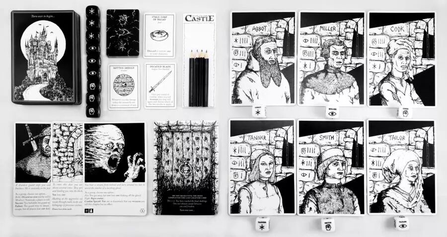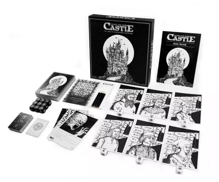Escape the Dark Castle présente un design rétro inspiré des jeux de société des années 80 et 90. Les illustrations sont simples mais efficaces, et l'ambiance du jeu est à la fois sombre et immersive.