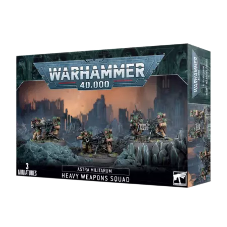Ce kit plastique permet d'assembler trois Équipes d'Armes Lourdes, des duos de fantassins maniant une arme portative. Chaque équipe peut être dotée d'une arme à choisir entre un bolter lourd, un lance-missiles, un mortier, un autocanon ou un canon laser. Le kit inclut toutes sortes d'options esthétiques pour varier vos figurines : des munitions supplémentaires, sept têtes différentes, différentes poses, et de l'équipement comme des systèmes vox et des macrojumelles pour les observateurs et les chargeurs. Ainsi vos équipes ne se ressembleront pas. Ces équipes peuvent être déployées ensemble en tant qu'Escouades d'Armes Lourdes, ou combinées avec les Troupes de Choc Cadiennes pour former des Escouades d'Infanterie avec des Équipes d'Armes Lourdes assignées.