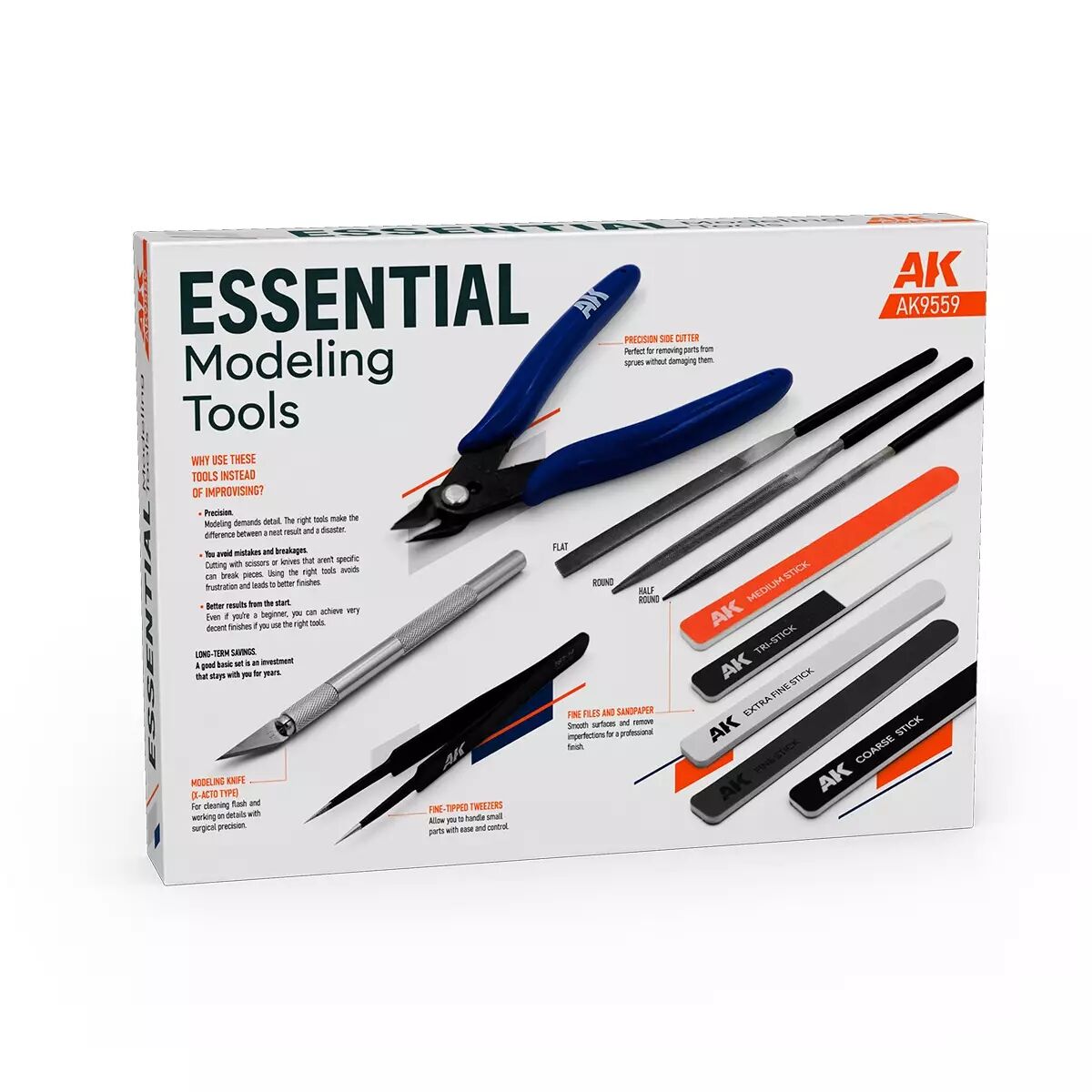 L'Essential Modeling Tools d'AK Interactive (référence AK9559) est un kit fondateur destiné aux modélistes de tous niveaux. Cet ensemble de 11 pièces métalliques réparties en cinq familles d'outils représente un investissement durable conçu pour accompagner le modéliste pendant des années. La sélection minutieuse des outils garantit une couverture complète des opérations critiques du processus de montage et de finition.