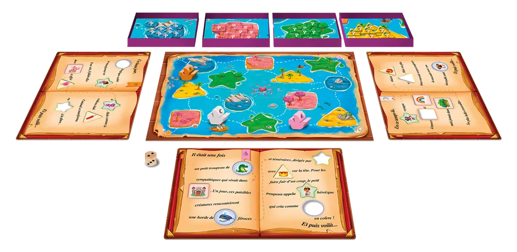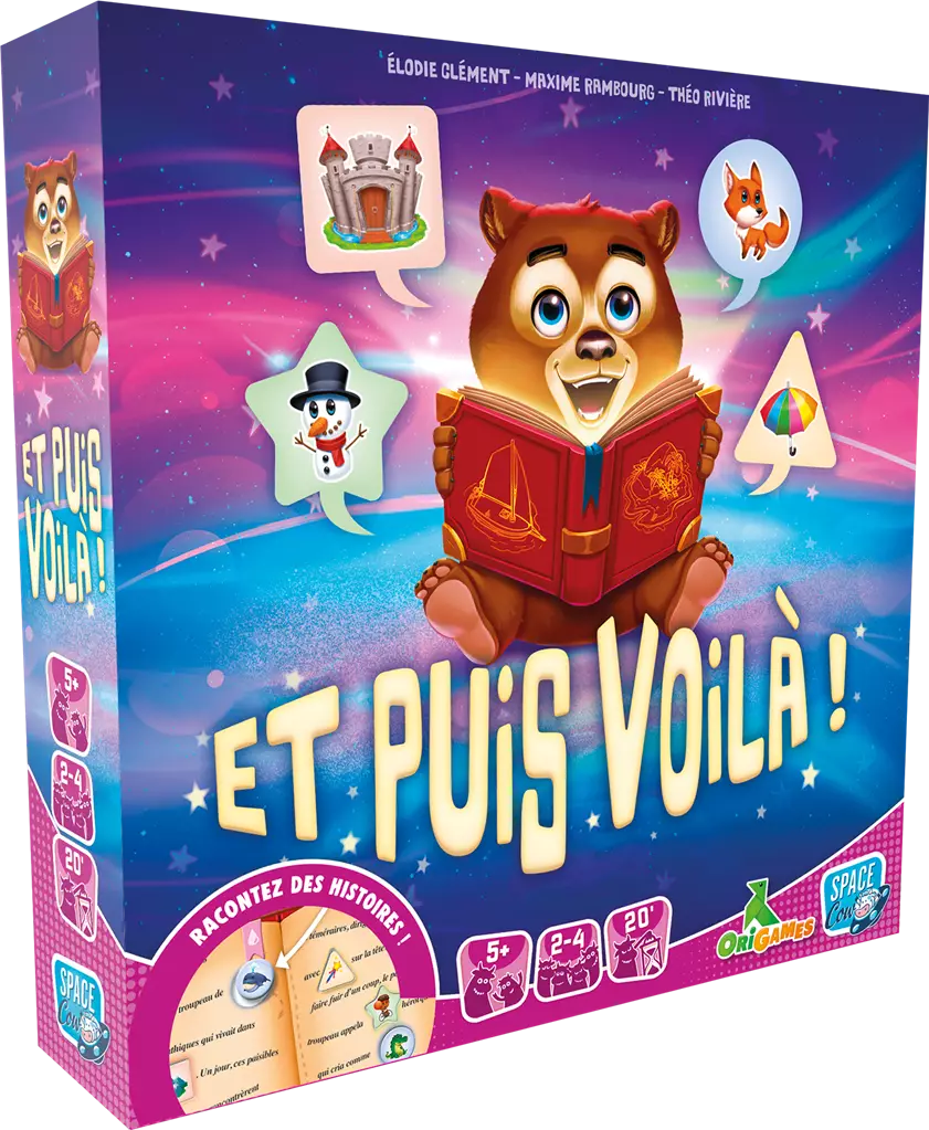Dans Et Puis Voilà !, les joueurs voguent d’île en île pour rassembler des mots correspondant à des formes. Chaque partie se termine par une histoire unique, enrichie par la fantaisie des enfants. Les mots collectés se transforment en récits hilarants ou poétiques, encourageant les jeunes joueurs à explorer leur imagination.