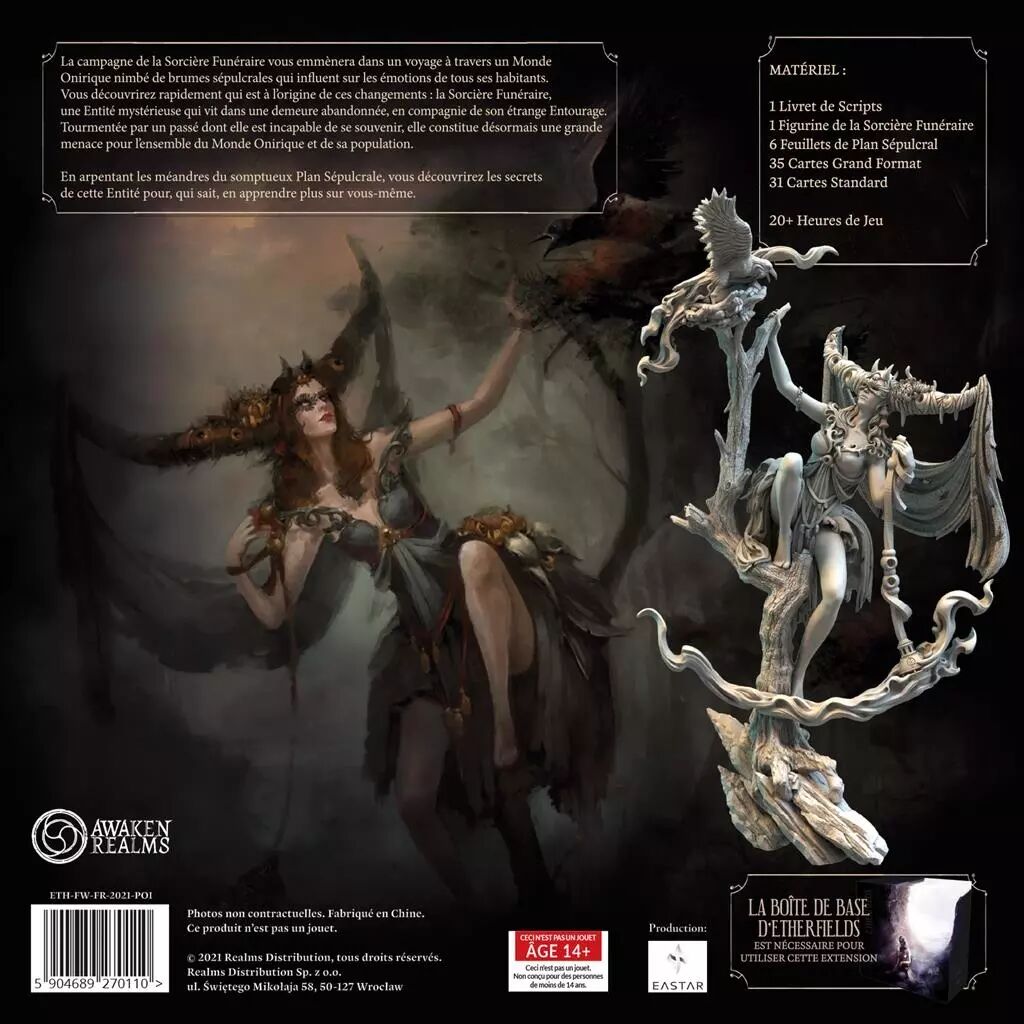 La sorcière funéraire est une figure très mystérieuse et sombre, incarnant, entre autres, la tristesse, la douleur et le regret après la perte d’un être cher. Elle peut être sombre, chaotique et capricieuse, mais dans le même temps, cherche toujours du réconfort. À chaque nouvelle rencontre, son comportement peut être complètement différent. Les Rêveurs sauront-ils décrypter la clé de ces changements, et ainsi préparer sereinement la prochaine rencontre ? Ou risque-t-il de se nouer dans un chagrin sans fin ? Cette campagne contient un livret 48 pages, 1 figurine, 35 cartes grands format et 31 cartes standard.
