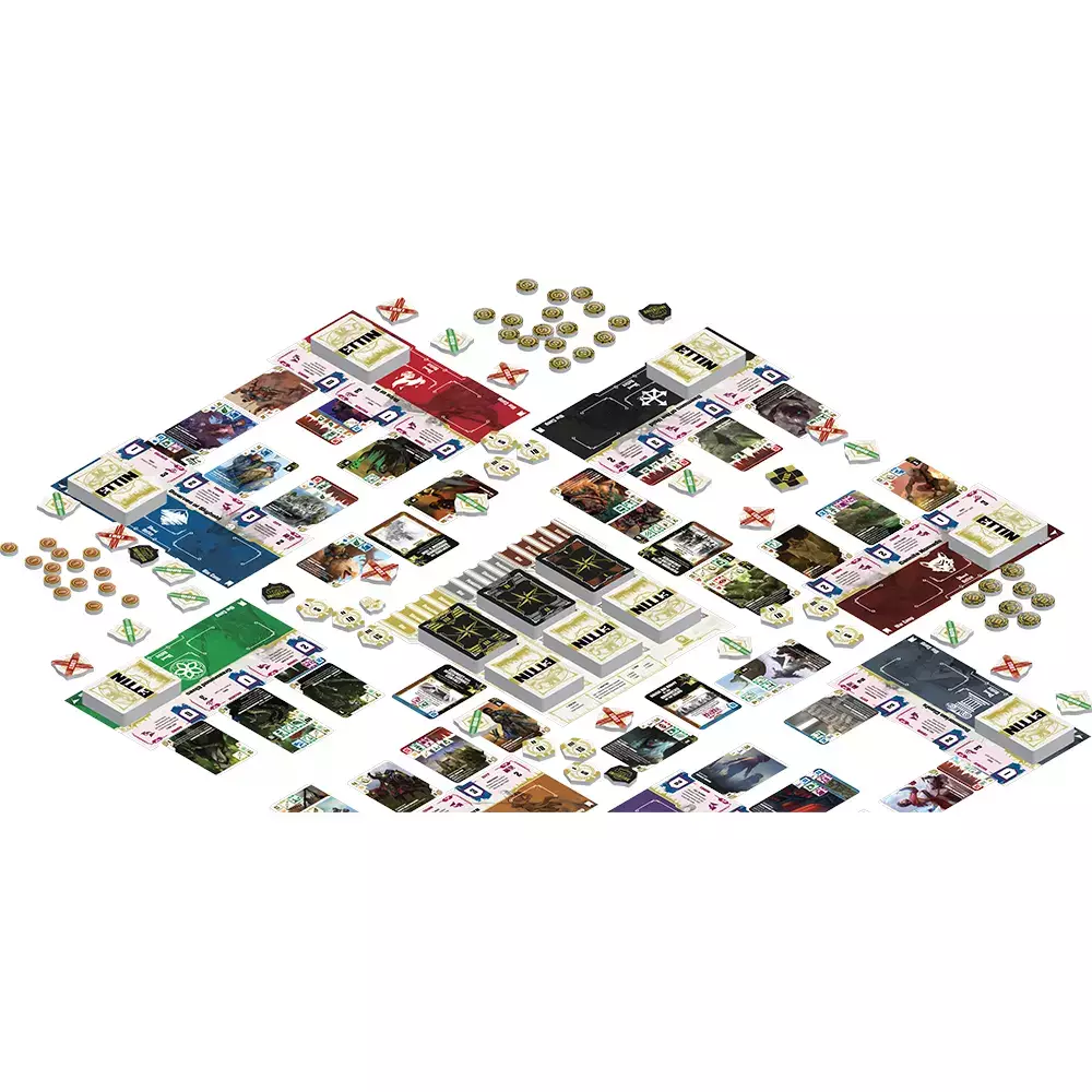 ETTIN est un jeu de cartes et de draft pour 2 à 8 joueurs mettant en scène des duos de Factions qui se livrent des batailles rangées omériques. 2 contre 2 contre 2 contre 2… Et plus encore ! Vous et votre Allié dirigez chacun une Faction issue d’un univers heroic fantasy pour prendre part à des affrontements épiques ! Élaborez des stratégies, érigez des défenses, partagez des ressources avec votre partenaire, compensez ses faiblesses, optimisez vos forces et repoussez les assauts de vos voisins ennemis ! Plus que jamais, l’union fait la force !