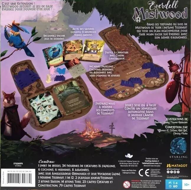Tapi dans les profondeurs de Mistwood, le rusé et méchant Nightweave complote pour prendre le contrôle d'Everdell. Recrutez des héros d'antan grâce aux packs More Legends et Corrin Evertail, et transformez vos fermes avec notre nouveau pack d'extension Through Every Season !