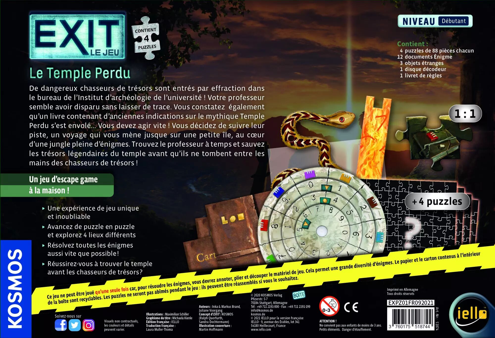 Réf. : 51874 Exit Puzzle : Le Temple Perdu est un jeu coopératif d'énigmes et de logique où vous devrez collaborer pour avancer de puzzle en puzzle et tenter de vous échapper !