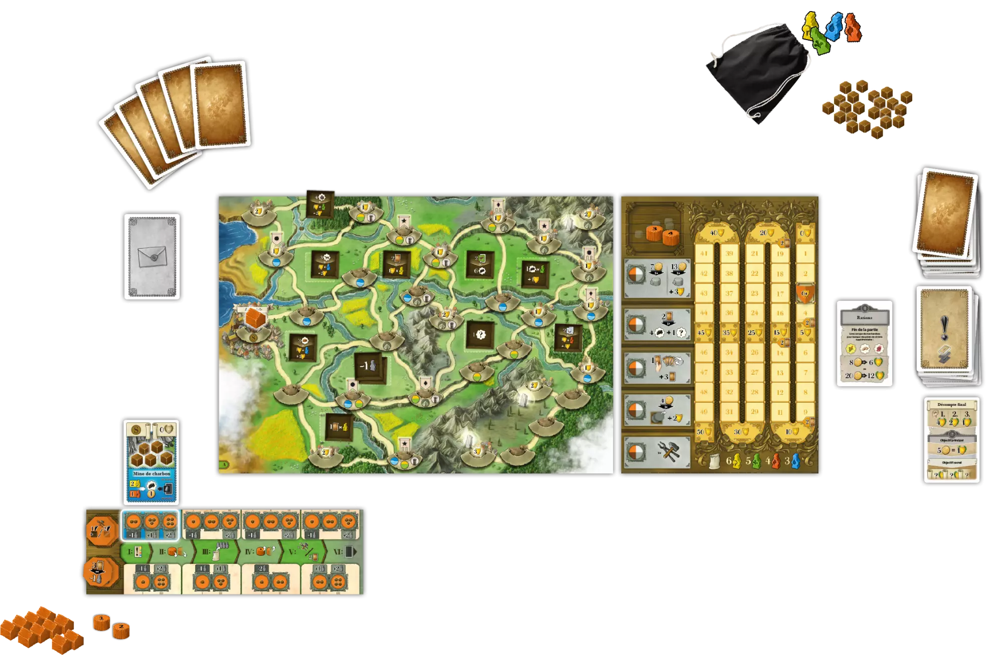 Le jeu propose une aventure qui se décompose en plusieurs chapitres. Libre à vous d'en jouer plusieurs à la suite ou de les accomplir indépendamment. A chaque chapitre est attribuée une carte Objectif principal indiquant les marchandises à livrer d'ici la fin de la partie.
