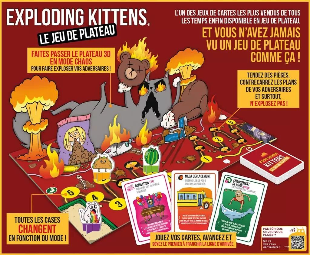 Votre objectif est d'atteindre la fin du plateau sans atterrir sur un chaton explosif. Pour cela, vous jouerez des cartes et élaborerez des stratégies pour saboter vos adversaires. Mais ne soyez pas trop arrogant, car un seul faux pas peut faire basculer le plateau.