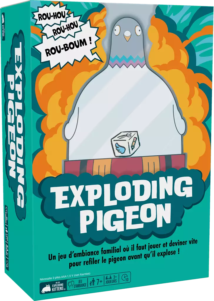 Exploding Pigeon offre une expérience de jeu ultra conviviale et explosive qui mêle rapidité, créativité et coopération dans une ambiance festive. Facile à apprendre, il convient parfaitement aux familles, groupes d’amis ou pour animer des événements. Avec un matériel fun et des défis variés, c’est un indispensable du jeu d’ambiance moderne qui garantit des éclats de rire et une grande rejouabilité.