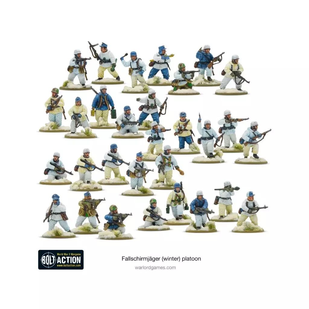 Accueil > Figurines > Les autres licences > Bolt Action > Germany > Fallschirmjäger Winter Platoon - Peloton de parachutistes allemands en tenue hivernale - Bolt Action - Warlord Games