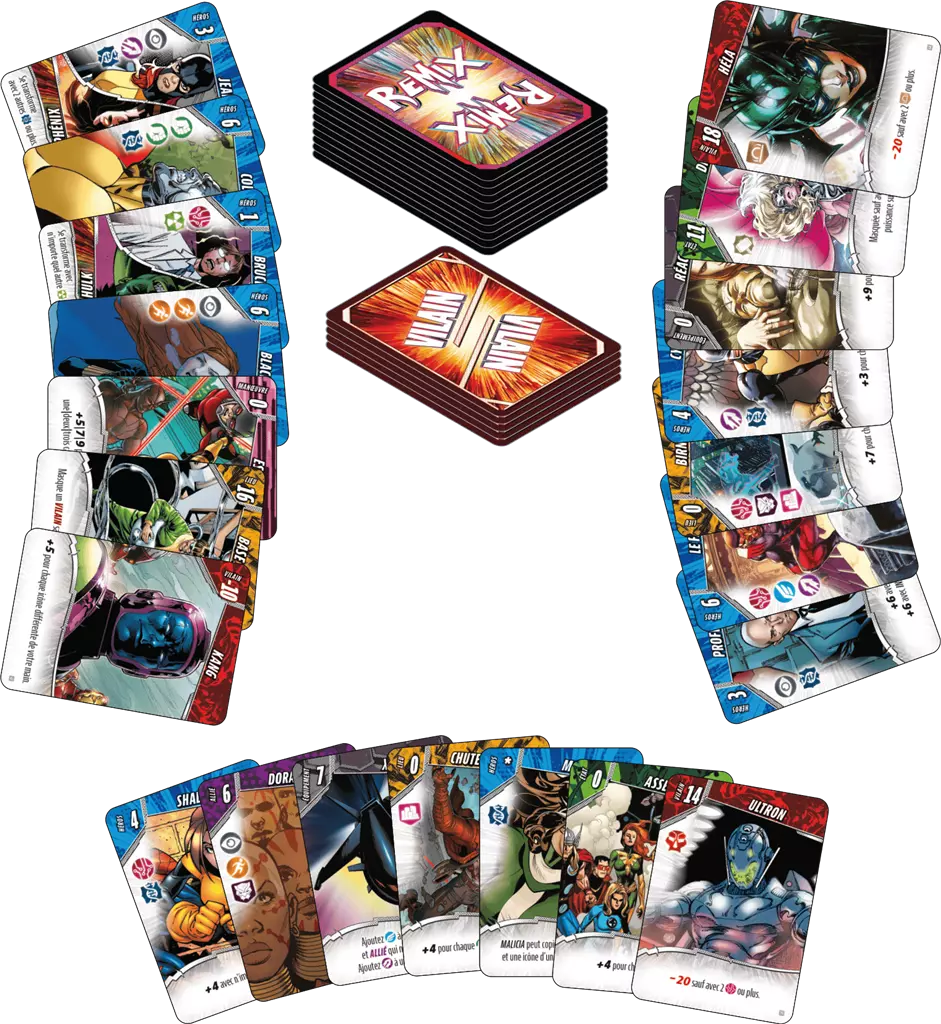 Les joueurs reçoivent une main de sept cartes représentant des personnages, des objets ou des lieux de l'univers Marvel. À chaque tour, vous piocherez dans la pioche des héros, la pioche des méchants ou les cartes défaussées par vos adversaires, avant de défausser vous-même une carte. Les cartes ont une valeur de base, et un bonus qui change en fonction des autres cartes de votre main. Celui qui a la main qui vaut le plus de points à la fin de la partie est le gagnant !