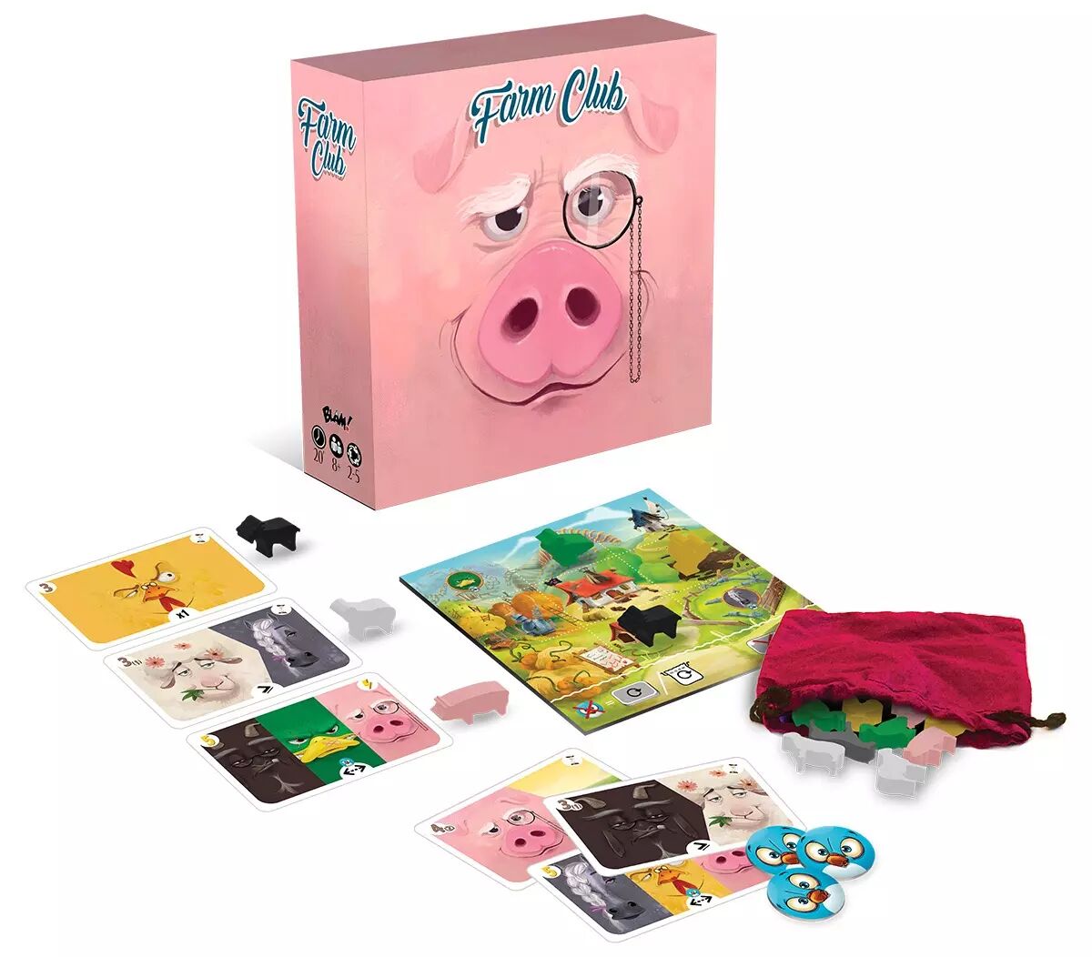 Farm Club est un jeu d’optimisation aux règles simples mais aux décisions cruciales. A son tour, parmi les lots (animal + objectif) à sa disposition, le joueur choisit celui dont la combinaison sert le mieux sa stratégie : faut-il prendre un mouton ou un canard ? A quel endroit le placer dans sa ferme ? Quel nouvel objectif semble réalisable ?